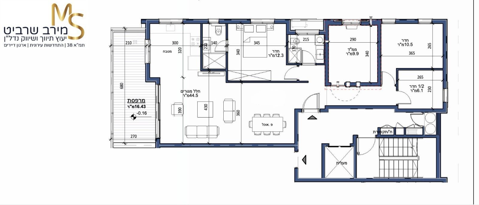 דירת 4.5 חדרים שטוחה כ- 110 מ״ר עם מרפסת מהסלון כ- 17 מ״ר