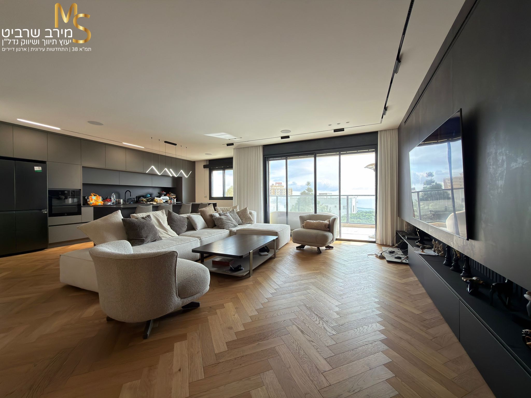 דירת 4.5 חדרים (במקור 5) כ-145 מ"ר בנוי עם מרפסת כ-12 מ"ר עם נוף לים