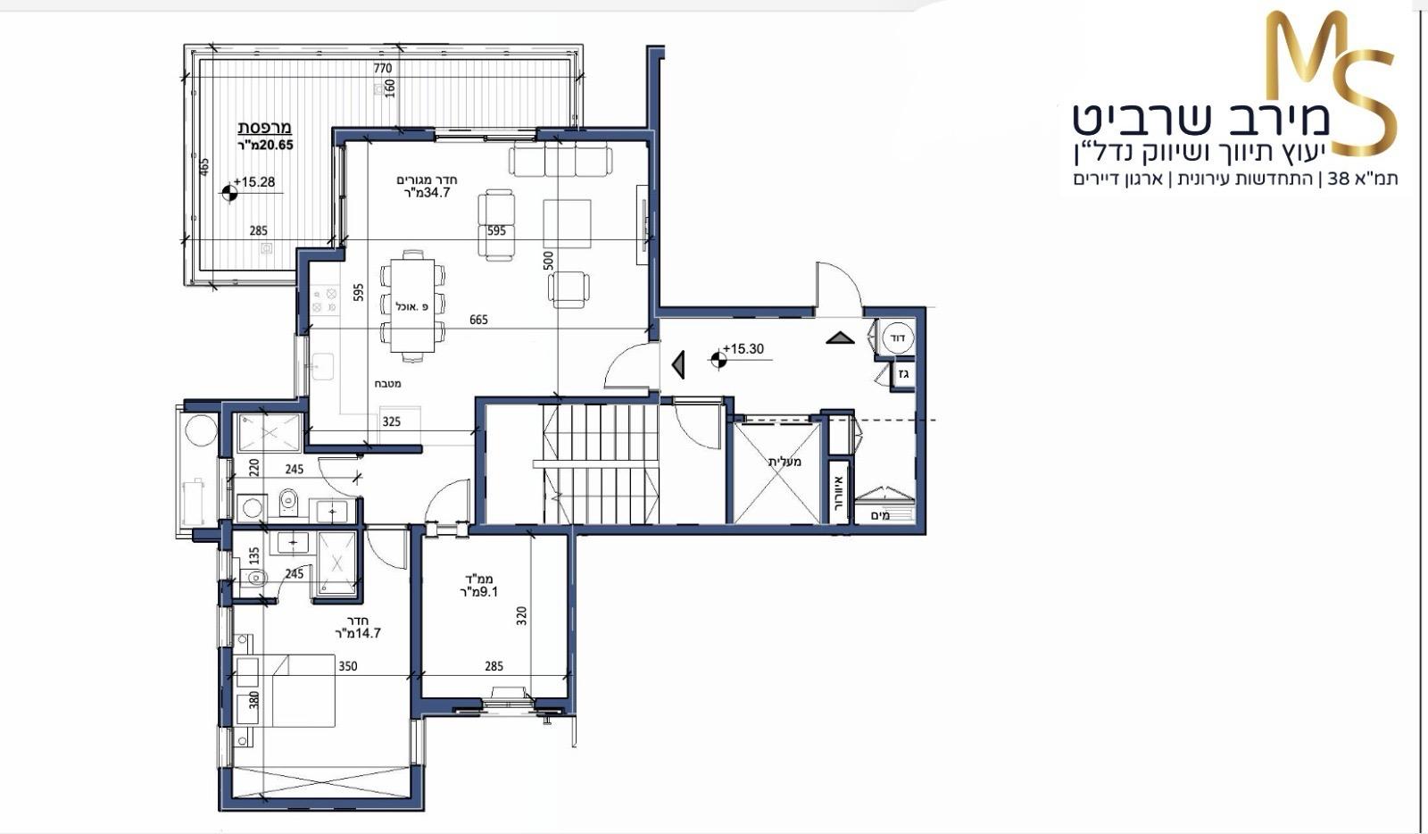 פנטהאוז 3 חדרים שטוח כ- 81 מ״ר עם מרפסת מהסלון כ- 21 מ״ר לנוף