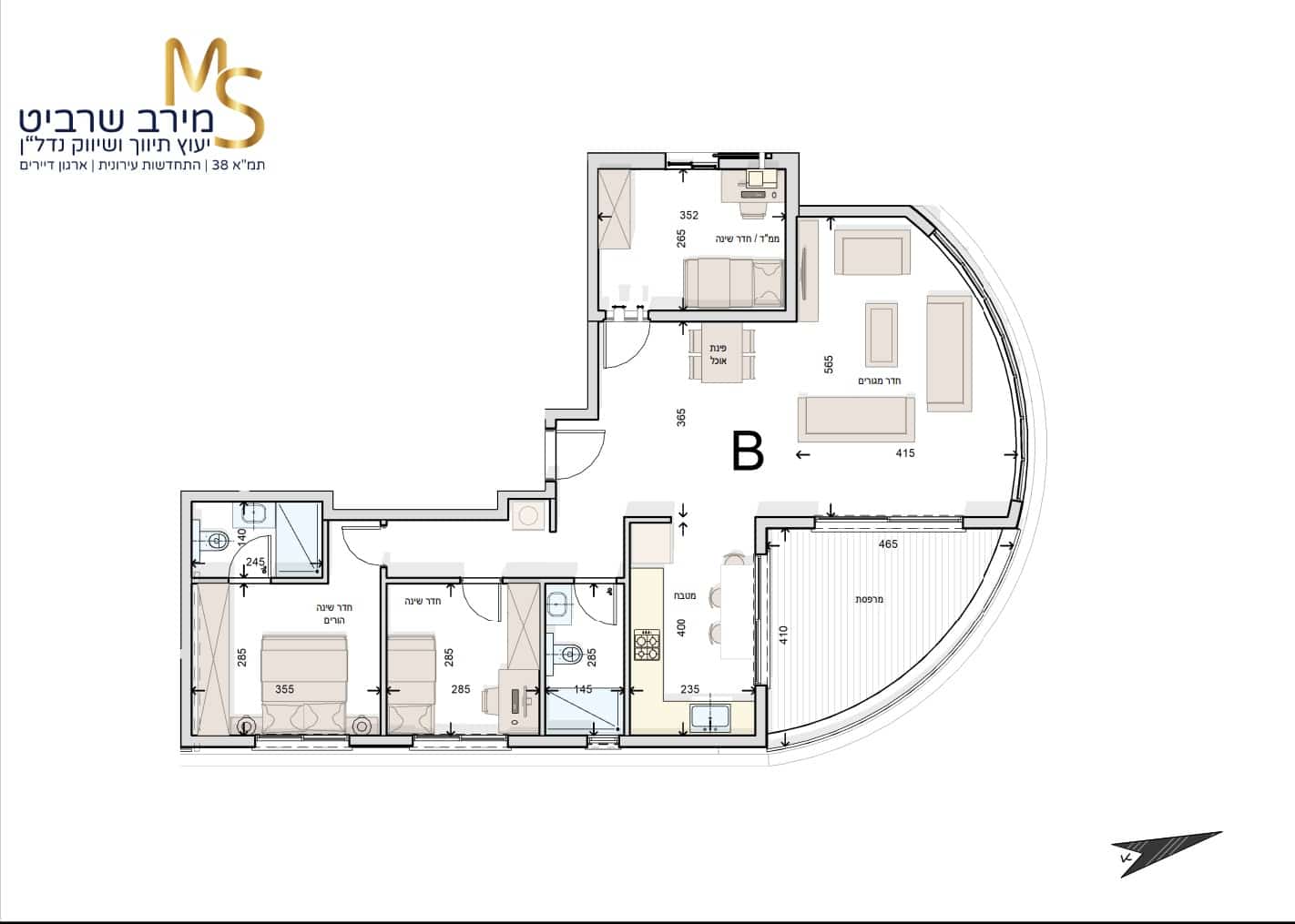 דירת 4 חדרים שטוחה ומרווחת כ-108 מ"ר, מרפסת שמש כ-12 מ"ר,